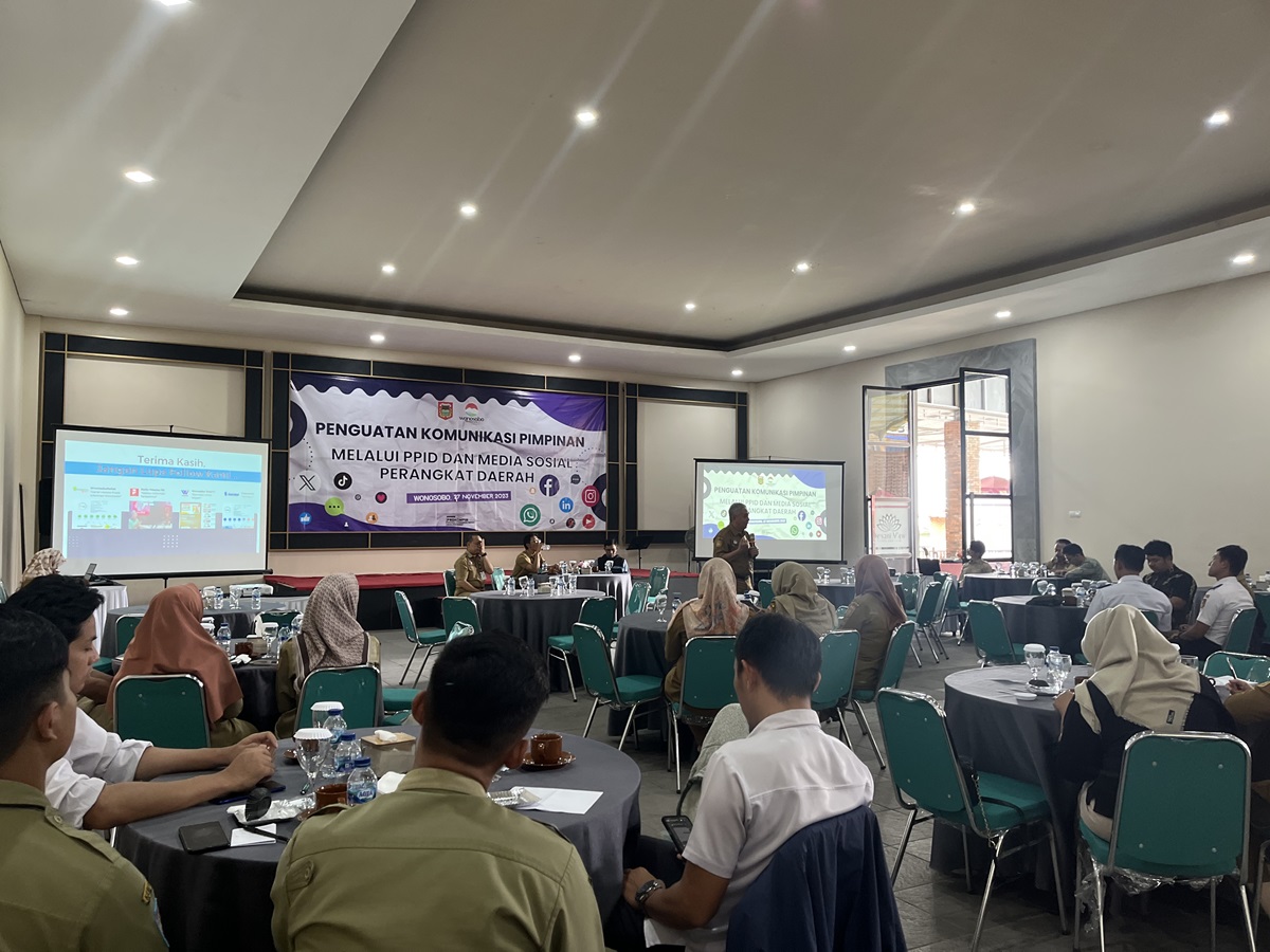 Pemerintah Daerah menekankan komitmen untuk menjadikan PPID sebagai lembaga yang responsif dan terbuka, serta memanfaatkan media sosial sebagai jembatan interaktif dengan masyarakat. Demikian ditegaskan Sekretaris Daerah Wonosobo, One Andang Wardoyo saat menghadiri acara Penguat Komunikasi Pimpiman Melalui PPID dan Media Sosial Perangkat Daerah di Dewani Resto, Senin (27/11/2026).