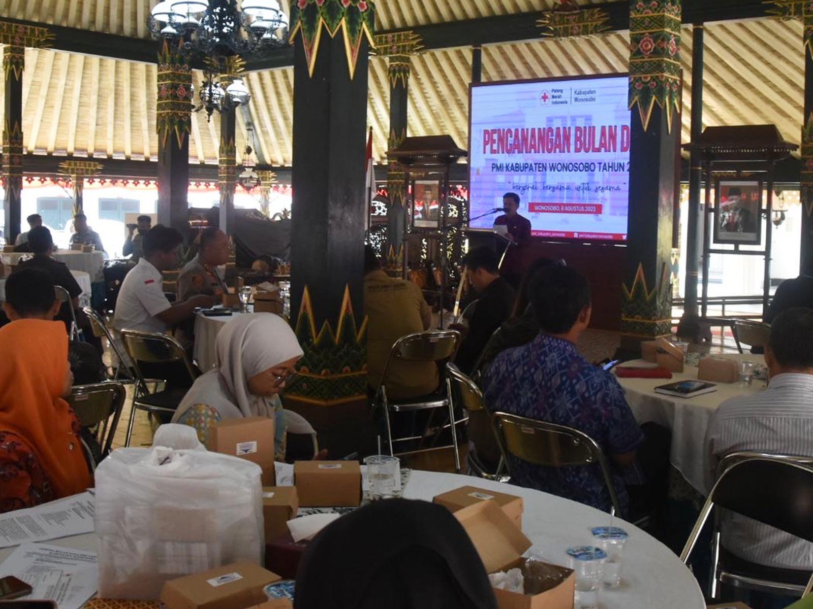 Bupati Wonosobo Afif Nurhidayat, saat Pencanangan Bulan Dana PMI Kabupaten Wonosobo tahun 2023, Selasa (8/8/2023) di Pendopo Selatan, menegaskan, tidak hanya urusan darah saja, namun PMI juga berkontribusi lebih dalam membantu sesama, baik itu penanganan kemiskinan maupun urusan kemanusiaan lainnya.