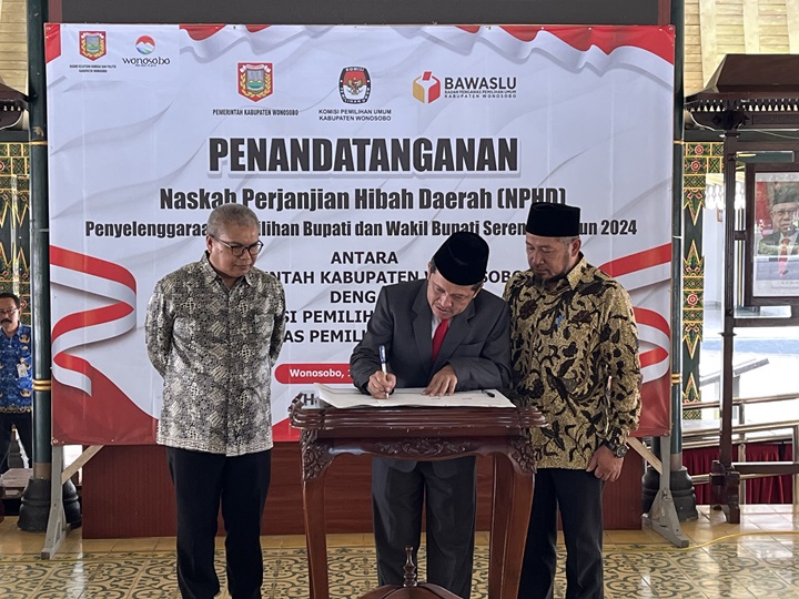 Penandatanganan NPHD, Dukung Terwujudnya Pilkada 2024 Berkualitas di Kabupaten Wonosobo