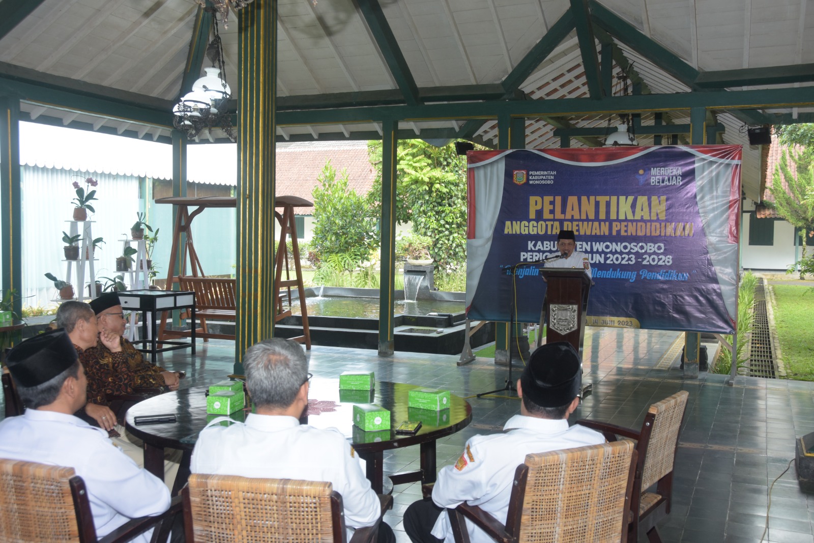 Bupati Wonosobo Afif Nurhidayat menegaskan, sebagai mitra strategis Pemerintah Daerah, Dewan Pendidikan berperan menampung berbagai aspirasi masyarakat dan merumuskan kebijakan-kebijakan di sektor pendidikan Rabu, (14/6/2023), dalam acara Pelantikan Pengurus Dewan Pendidikan Kabupaten Wonosobo masa bhakti 2023-2028, di Pendopo Utara.