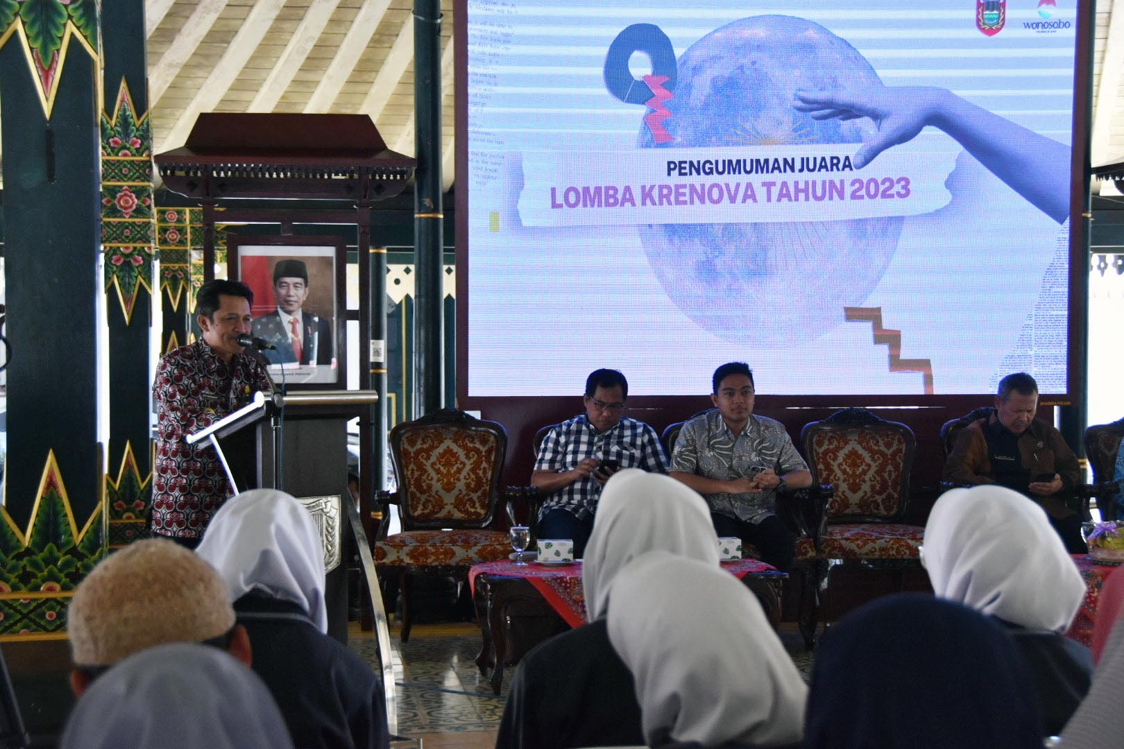 Karya inovasi sangat dibutuhkan masyarakat dalam mempermudah dan menambah produktivitas menghadapi tantangan masa depan. Demikian ditegaskan Bupati Wonosobo Afif Nurhidayat saat memberikan hadiah pemenang Lomba Krenova (Kreativitas Inovasi Masyarakat) dan mini expo produk Krenova Kabupaten Wonosobo, di Pendopo Selatan, Selasa (3/10/2023).