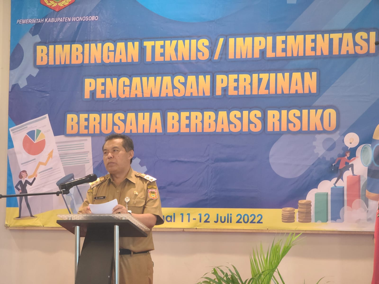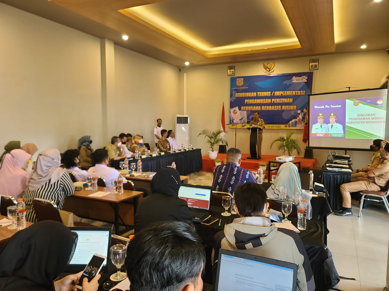 Guna meningkatkan realisasi penanaman modal di Kabupaten Wonosobo, Dinas Penanaman Modal Perizinan Terpadu Satu Pintu (DPMPTSP) Wonosobo menggelar Bimbingan Teknis Sosialisasi Implementasi Perizinan Berusaha Berbasis Risiko, Senin (11/07/2022) di hotel Front One Harvest